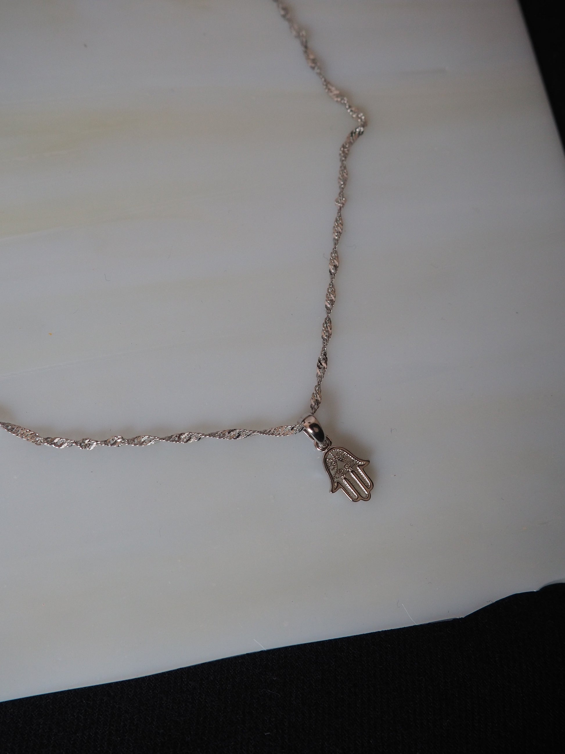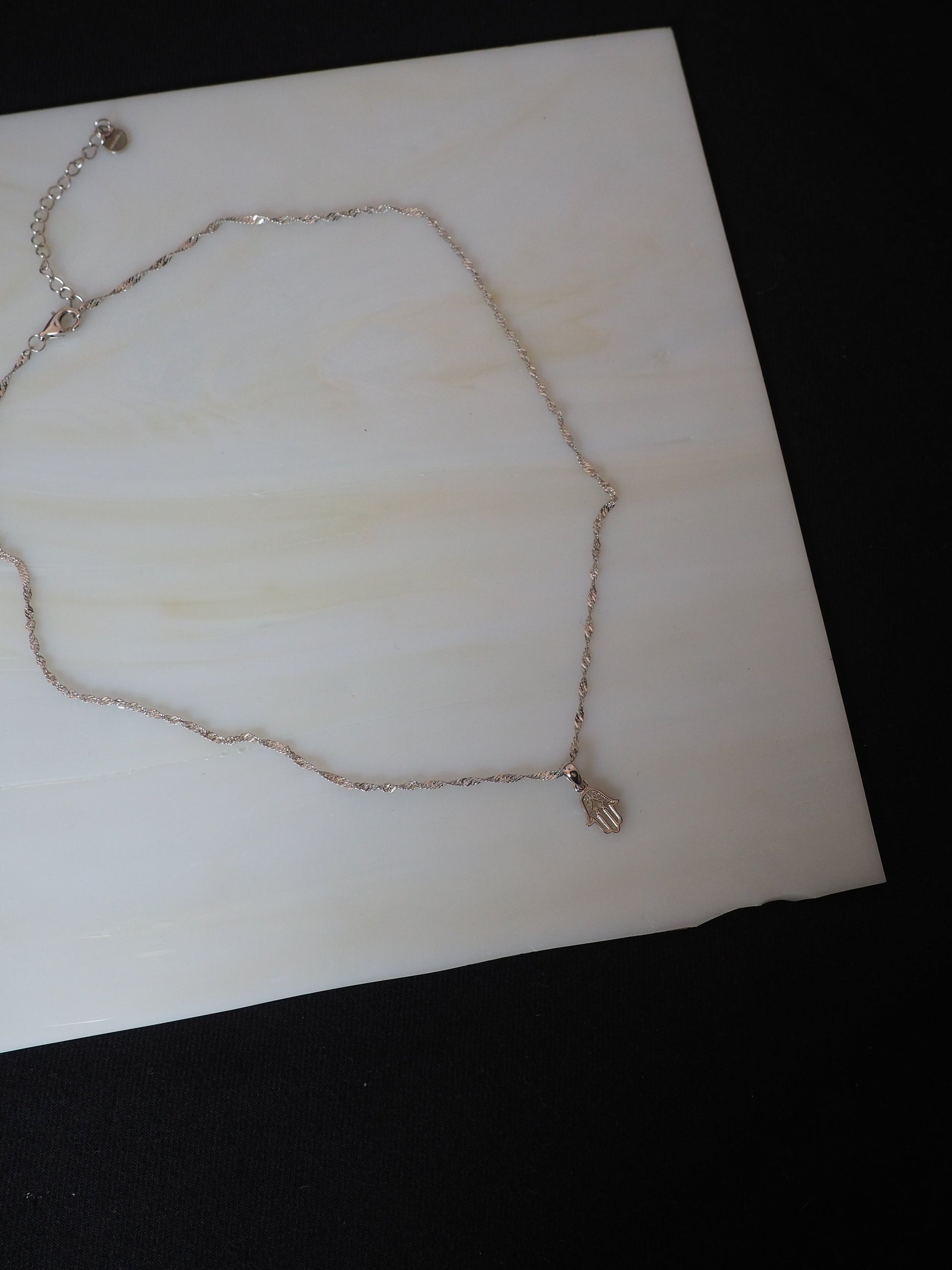 Hamsa lines mini necklace - silver